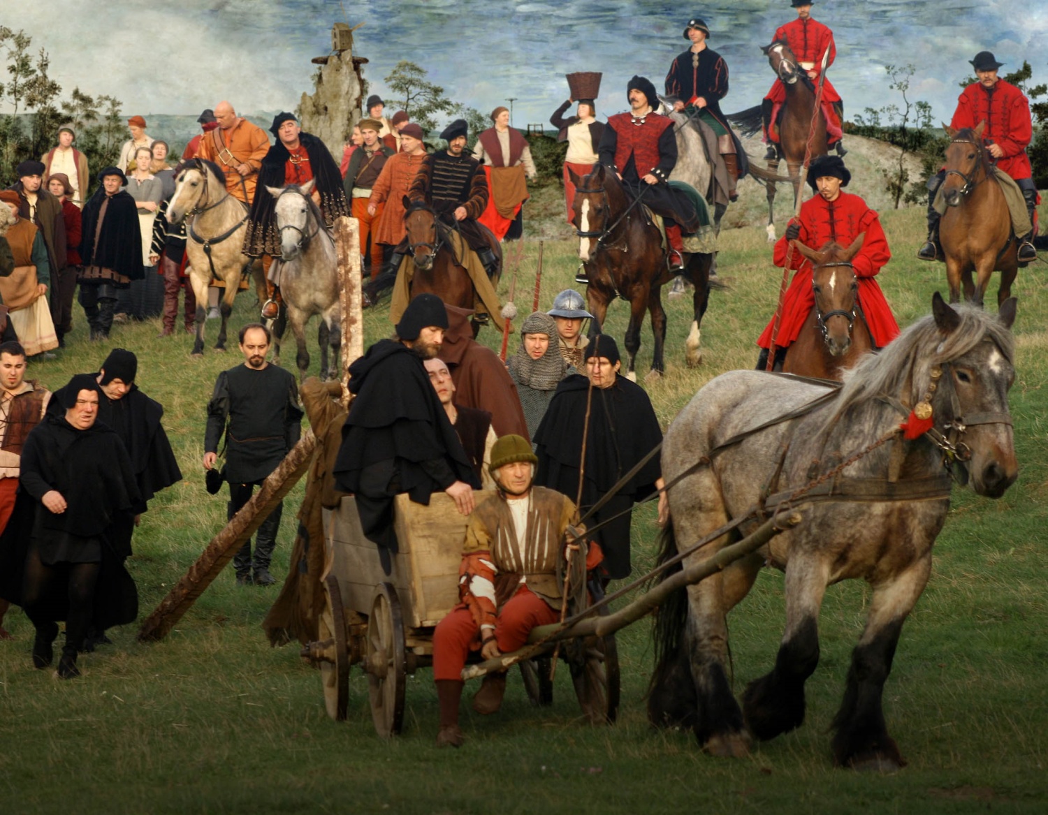 Taking Pieter Bruegel the Elder's complex 1564 masterpiece The Way to Calvary as his foundation, director Majewski has fashioned a hypnotic fusion of cinema and fine art, in which five hundred figures stir to life amidst the rustic landscapes of Flanders. From the swarming multitude the film selects a dozen characters – a grieving Virgin Mary (Charlotte Rampling), a wealthy patron (Michael York), and countless peasants – whose lives unfold and intertwine over the course of a single day. Against the brutal religious persecution and political strife that wracked 16th-century Europe, the epic tragedy, shot with luminous stillness and sculpted camera movement, transforms painterly imagery into a near-silent reflection on divinity and human cruelty.