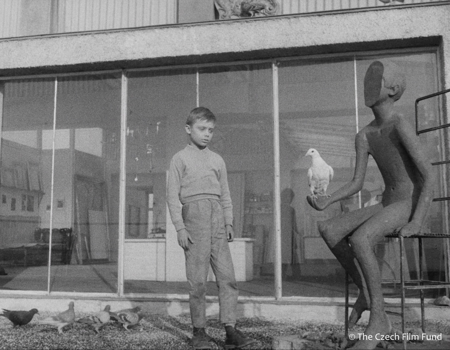 Vláčil’s feature-length debut is a deceptively simple and startlingly effective tale of a young boy and a dove, how their lives intersect and how their relationship transforms them both. Beautifully shot in a serene monochrome that, perhaps unusually, amplifies the whites, rather than the shadows, to an almost ethereal degree. The film, adapted from an Otakar Kirchner short story, follows a dove as it veers off course, and is shot down over Prague by a reclusive wheelchairbound boy. The bird survives, and as it is nursed back to health, inspires both the boy and a neighbourly artist. Drawing its strength from its narrative simplicity and rich visual symbolism, The White Dove soars with unabashed optimism.